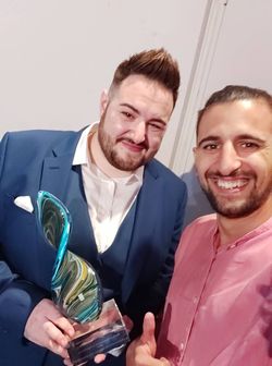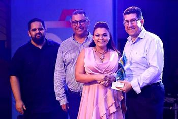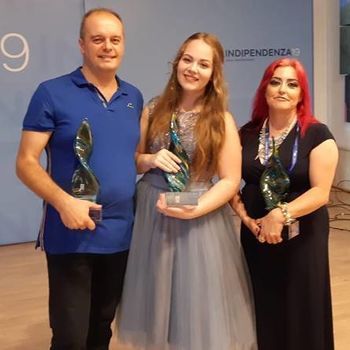 Amber Grace Scerri place 3rd with lyricst Emil Calleja Bayliss and the presence of Robert Cutajar Chairperson off KKI 2019 and PN General Secretary Clyde Puli